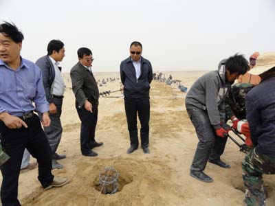 當(dāng)天早晨,王總經(jīng)理在集團(tuán)副總經(jīng)理、格爾木水電有限公司總經(jīng)理于宗甲陪同下,首先來到正在開展建前準(zhǔn)備工作的格爾木市東出口20兆瓦光伏發(fā)電站工地,察看了選址條件和水、電、路設(shè)施,詳細(xì)詢問了前期手續(xù)申報(bào)和施工準(zhǔn)備情況,并參觀了周圍在建同類項(xiàng)目施工現(xiàn)場和匯流送出工程。他要求集團(tuán)新能源辦繼續(xù)全力以赴推動(dòng)工作,格水電公司積極予以支持配合,加快完成項(xiàng)目報(bào)審程序,及早進(jìn)入工程建設(shè)階段,確保其在年底前投產(chǎn)發(fā)電,并力爭進(jìn)一步擴(kuò)展規(guī)模,真正用足用好國家扶持太陽能發(fā)電產(chǎn)業(yè)的各項(xiàng)政策。