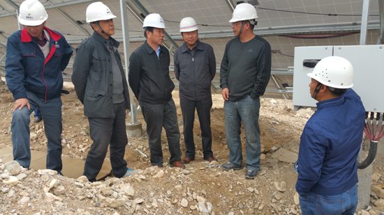 當(dāng)天上午,唐增科一行來到位于德令哈市區(qū)西北約20公里的聚能電力一期40光瓦并網(wǎng)光伏電站建設(shè)現(xiàn)場,察看了工程總體布置和當(dāng)前形象進(jìn)度,與建設(shè)、施工、監(jiān)理單位干部職工親切交流,了解參建隊(duì)伍配備、土建和安裝作業(yè)進(jìn)展、組件和機(jī)電設(shè)備到貨、驗(yàn)收和并網(wǎng)準(zhǔn)備工作,以及外圍協(xié)調(diào)和后勤保障等方面的情況,并分別向他們贈(zèng)送了慰問金,表達(dá)了集團(tuán)黨委、經(jīng)營班子和工會(huì)的親切問候。隨后,在工地召開座談會(huì),聽取了項(xiàng)目法人單位和參建各方負(fù)責(zé)同志的匯報(bào)。唐增科對于聚能電力公司周密安排、精心組織,參建各方精誠團(tuán)結(jié)、密切配合,較快完成工程的絕大部分實(shí)體任務(wù)予以充分肯定,并著重針對存在的問題,就抓好后續(xù)重點(diǎn)環(huán)節(jié)的工作提出了要求。他強(qiáng)調(diào),該項(xiàng)目對于聚能電力公司和集團(tuán)公司意義重大,其能否在630日前成功并網(wǎng),事關(guān)企業(yè)形象、資源配置及持續(xù)發(fā)展大計(jì)。各參建單位務(wù)必高度重視,拿出沖刺攻堅(jiān)的精氣神,進(jìn)一步加快進(jìn)度,嚴(yán)控質(zhì)量,嚴(yán)管安全文明施工,確保項(xiàng)目優(yōu)質(zhì)高效地建成,試運(yùn)行萬無一失,給集團(tuán)公司交上一份滿意的答卷。聚能電力公司要圍繞實(shí)現(xiàn)6·30發(fā)電目標(biāo),就全面做好驗(yàn)收、并網(wǎng)準(zhǔn)備工作進(jìn)行明確分工,詳細(xì)分解計(jì)劃和措施,逐級把責(zé)任落實(shí)到人,留足應(yīng)急余地,規(guī)定辦理時(shí)限,并加強(qiáng)與電網(wǎng)企業(yè)及政府部門的溝通協(xié)調(diào),確保各項(xiàng)任務(wù)按期圓滿完成。