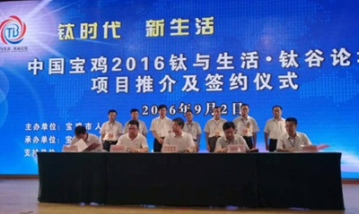 92,青海水電集團(tuán)副總經(jīng)理、青海聚能鈦業(yè)股份有限公司董事長(zhǎng)吳世周應(yīng)邀出席在寶雞舉行的 “第二十五屆中國(guó)西部商品交易會(huì)” 中國(guó)寶雞2016鈦與生活·鈦谷論壇項(xiàng)目推介活動(dòng)代表青海聚能鈦業(yè)有限公司與寶雞市政府簽訂了戰(zhàn)略合作協(xié)議。