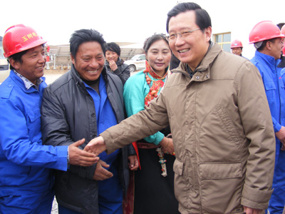 在離開項目工地前,強衛(wèi)書記和在場的水電干部職工一一握手。他拉著青海水電集團玉樹電力公司(玉能電力開發(fā)公司)總經(jīng)理徐涌同志的手親切地說:“我代表省委、省政府向公司干部職工表示藏歷新年的問候和祝愿,同時也衷心地希望你們繼續(xù)發(fā)揚和衷共濟、不怕困難、頑強拼搏的精神,繼續(xù)做好災(zāi)后重建保電工作”。同時, 他還向該公司贈送慰問金20000元。